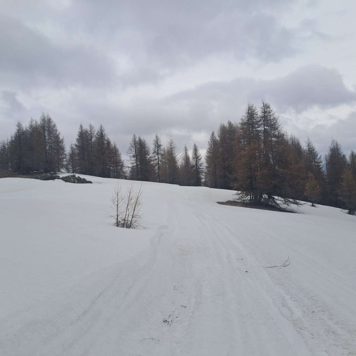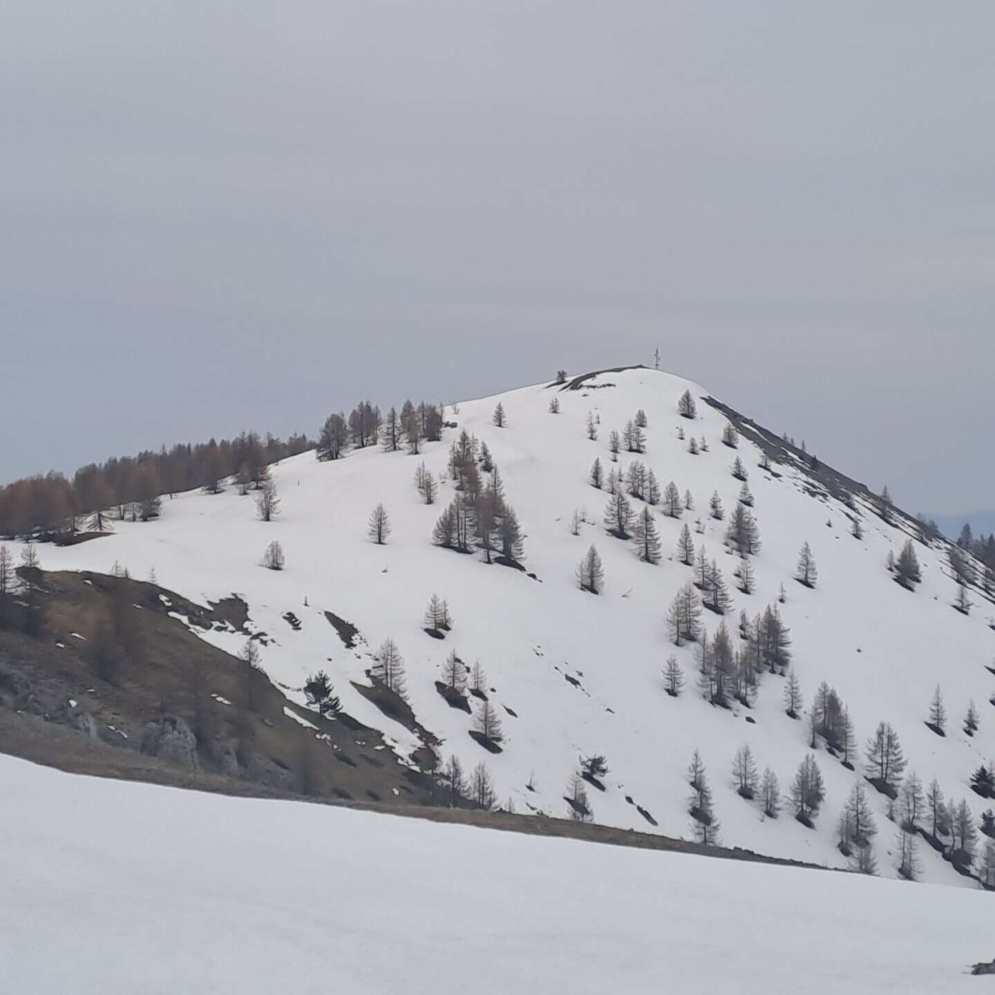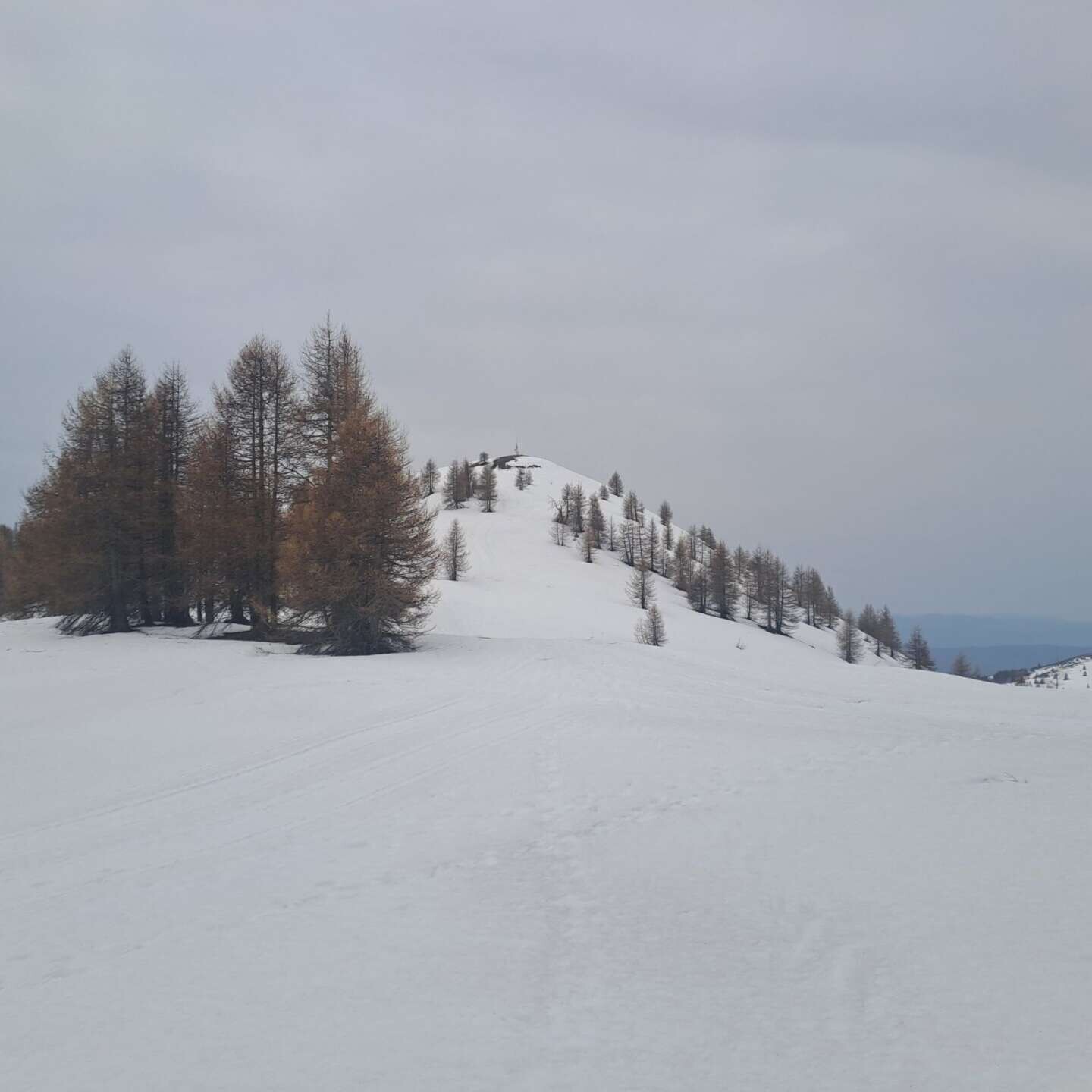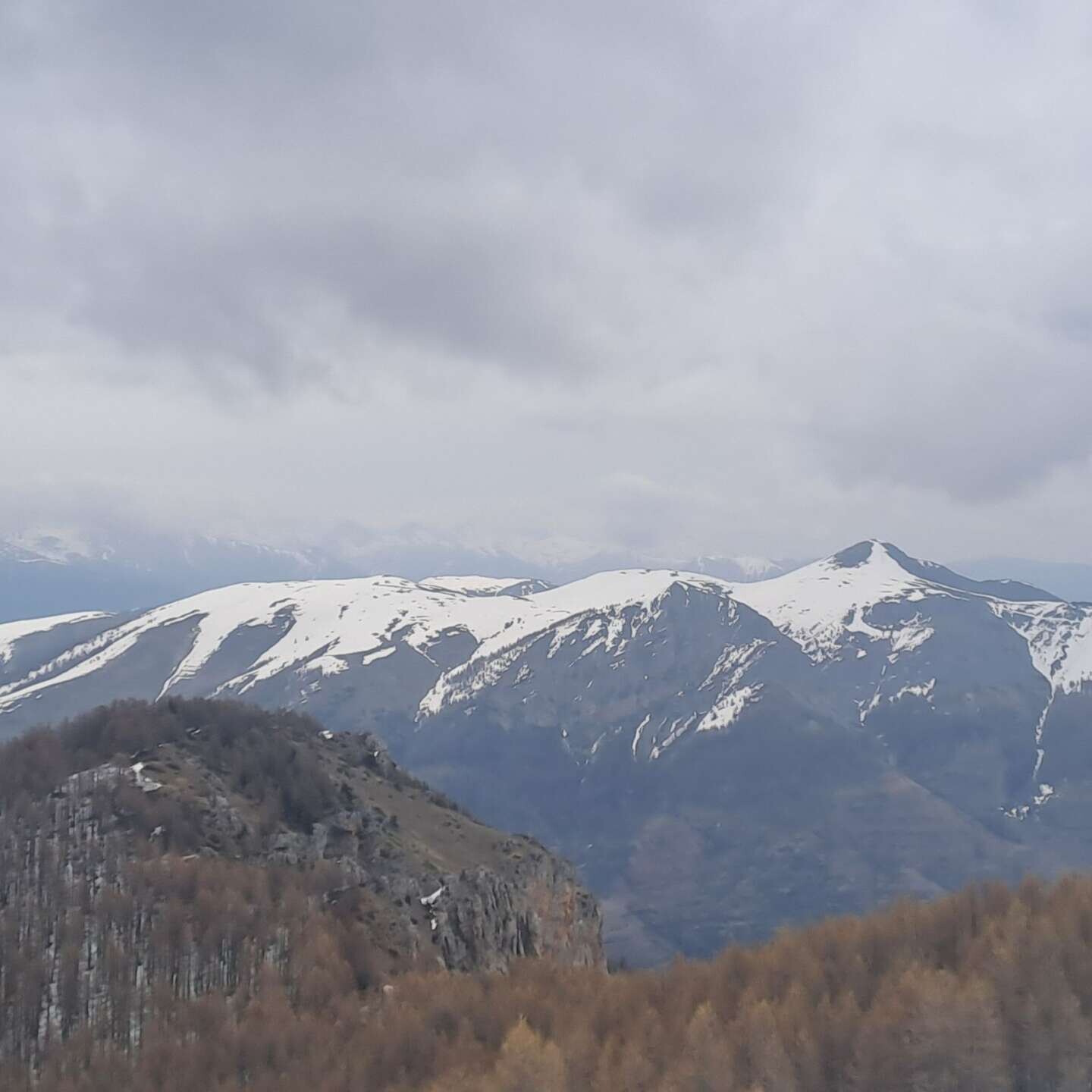 Départ du parking des Eguilles (1 498 m) – Montée via les pistes fermées de ski jusqu’à la crête puis à la cime du Faux Raton et enfin à la cime de Raton (2 066 m) – Pause Déjeuner – Retour à notre point de départ du matin par le hameau du Pra Bataglier.