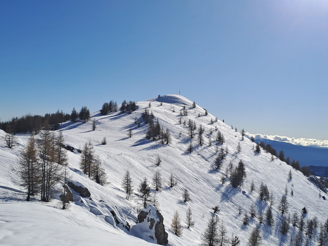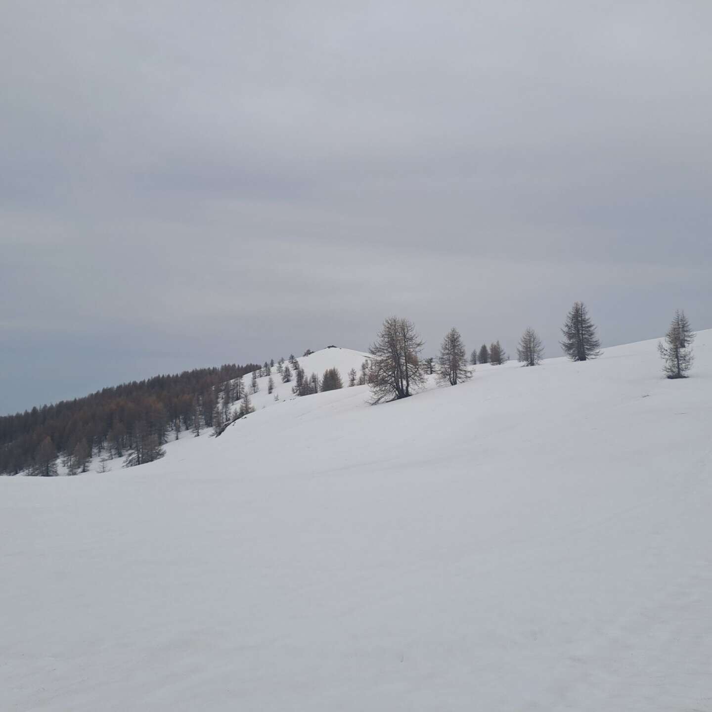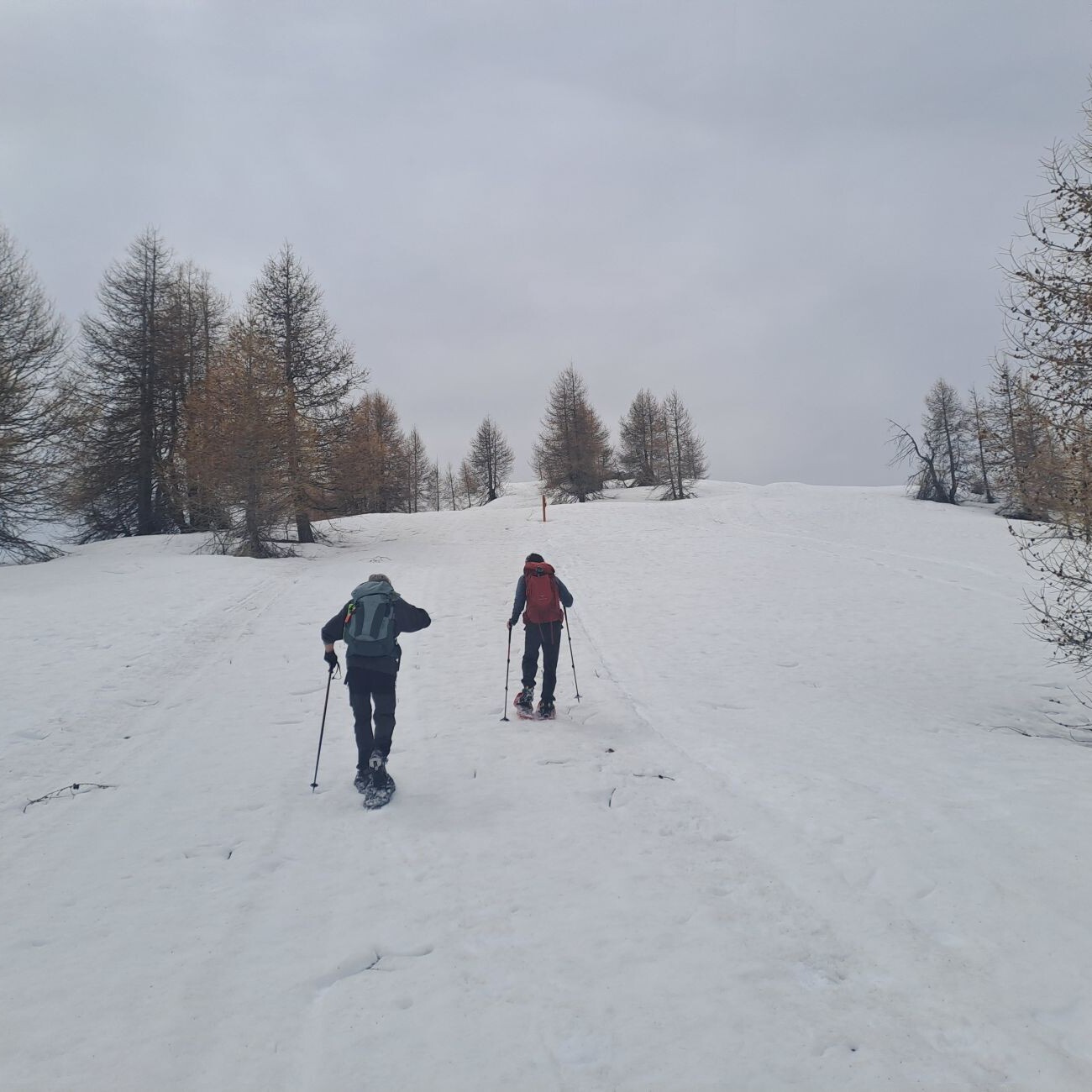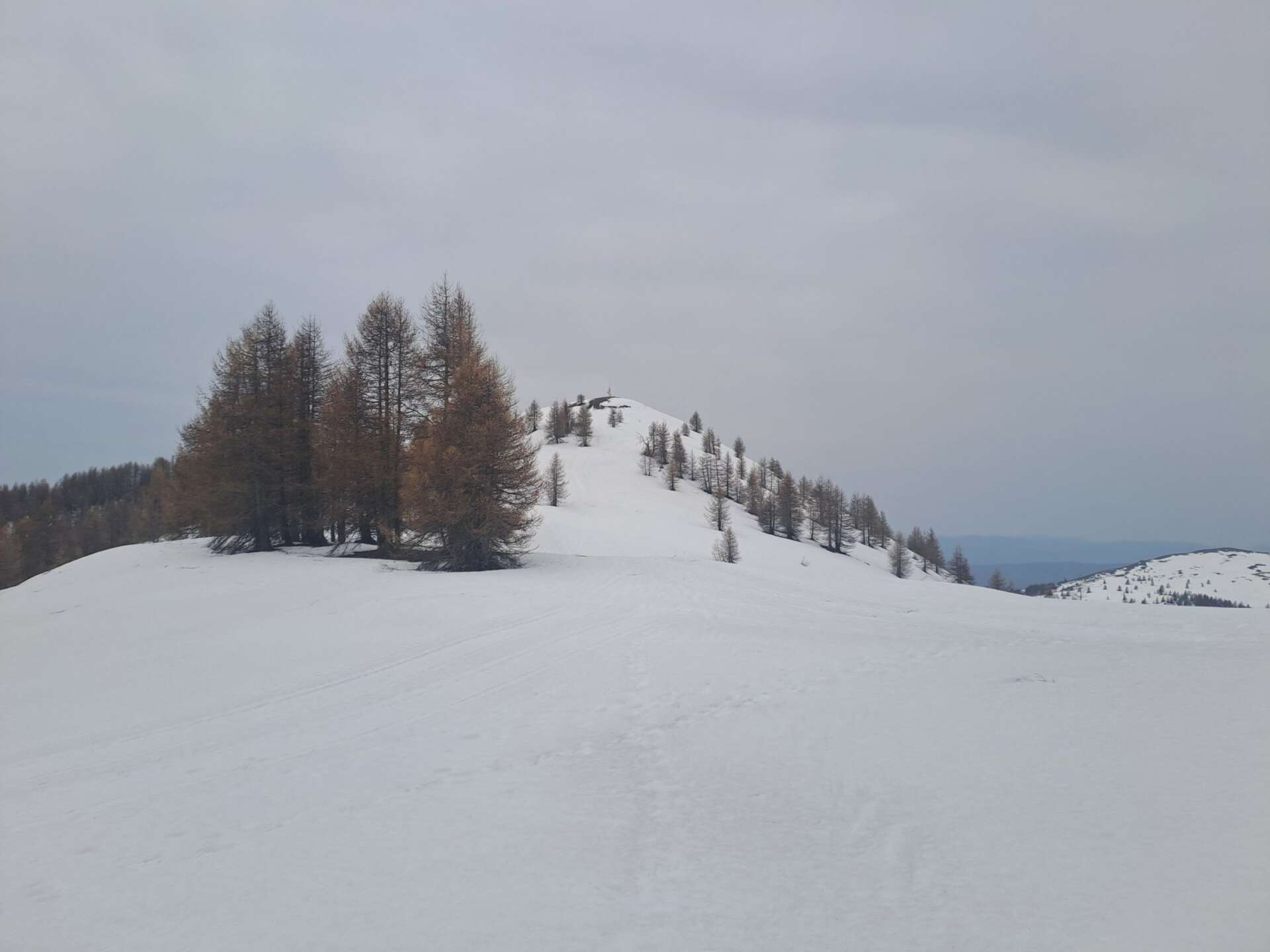 Départ du parking des Eguilles (1 498 m) – Montée via les pistes fermées de ski jusqu’à la crête puis à la cime du Faux Raton et enfin à la cime de Raton (2 066 m) – Pause Déjeuner – Retour à notre point de départ du matin par le hameau du Pra Bataglier.
